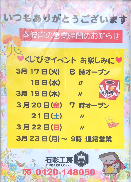 少しずつ春が近づいてきましたね! 今年の春彼岸のお知らせです♪ ↓ ↓ ↓ ↓ & …